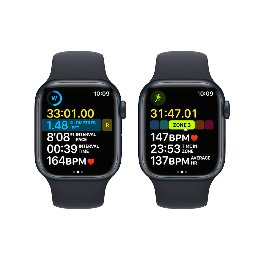 Apple Watch Series 8 features advanced health sensors and apps, so you can measure heart rate and blood oxygen,1 and track temperature changes2 for advanced insights into your menstrual cycle.3 And with Crash Detection, sleep stages tracking and advanced workout metrics, it helps you stay active, healthy, safe and connected.